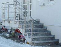 Metall aber auch Holz kann als Trittfläche verwendet werden, wobei Holz optisch besonders eindrucksvoll in Kombination mit einem Edelstahlgeländer zur Geltung kommt. Steintritte sind natürlich auch möglich - z.B. aus Marmor -, die durch ihre Individualität und Haltbarkeit durchaus reizvoll sind. |